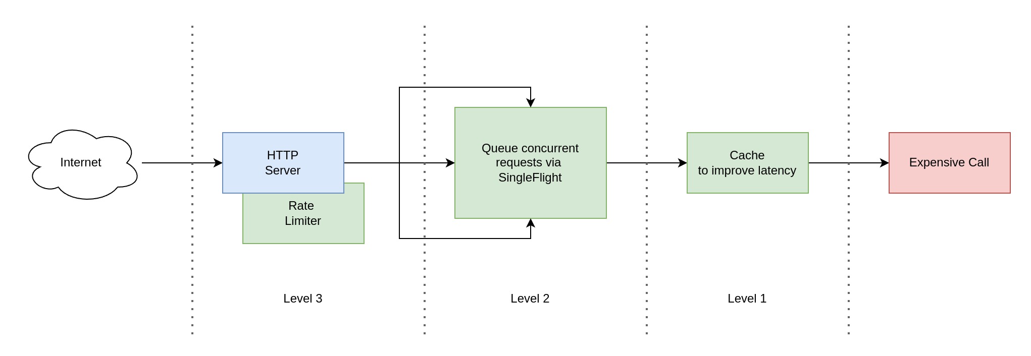 Let's update our endpoint code with Singleflight package. All concurrent incoming requests will queue up and wait until one of them exits from the expensive function call.